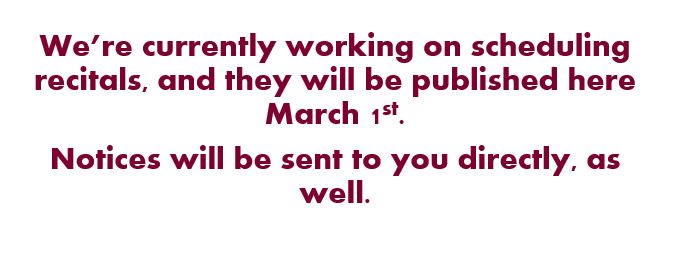 Recital Schedule to be posted March 1st, and notices will be sent to parents over the course of March.